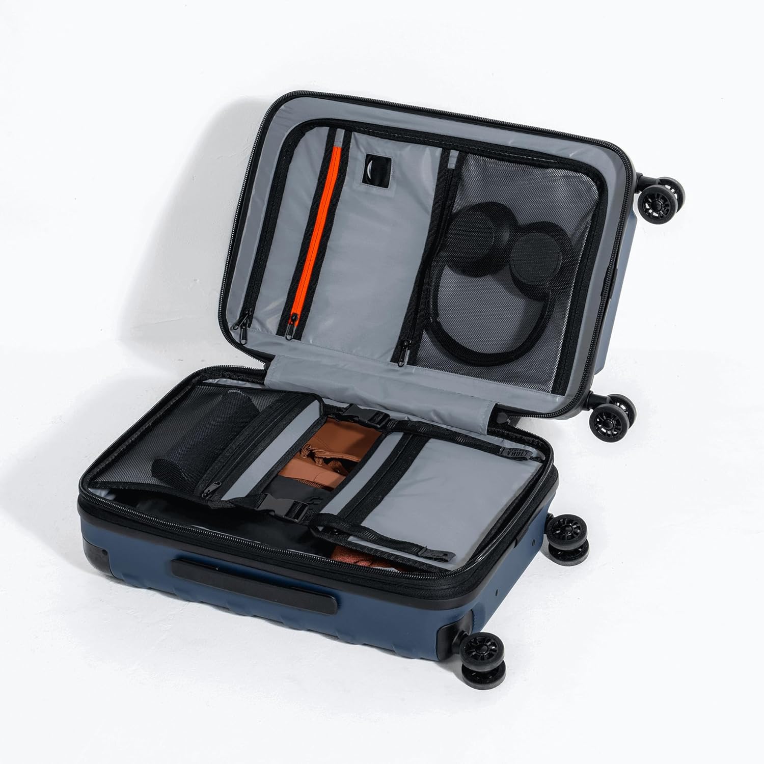 - FORGED CARBON COMPOSITE CORNERS - Built to take a hit - these ultra durable corners absorb impact to keep your gear protected and your luggage intact.