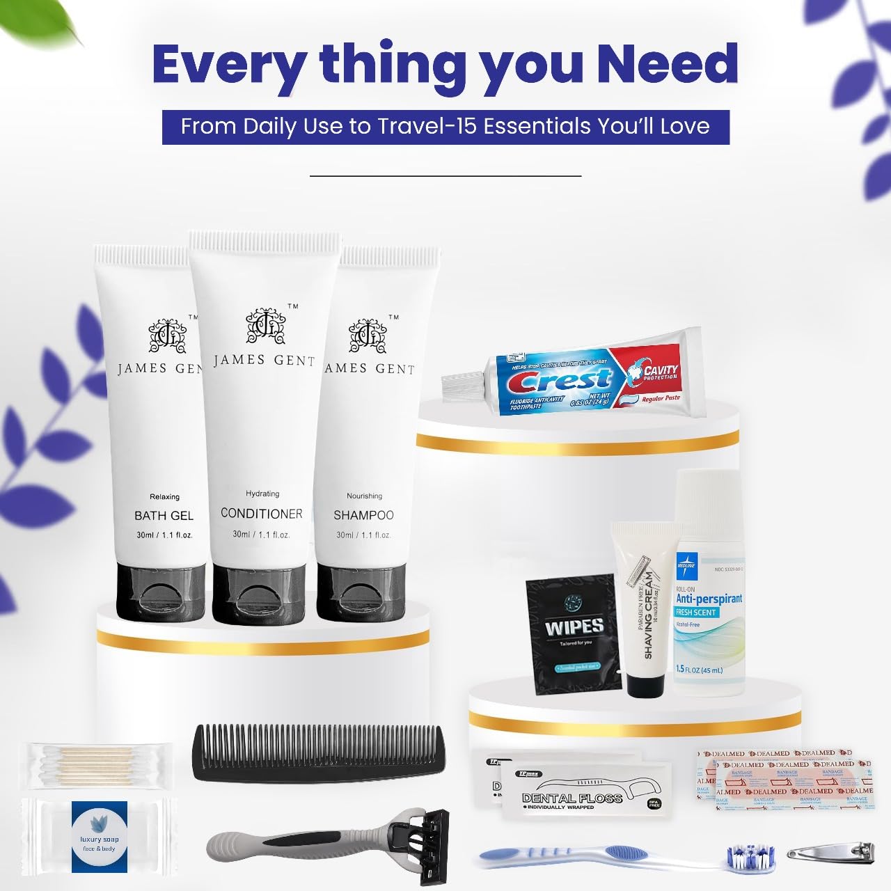 - The Perfect Travel Buddy: Our kit includes everything you need to feel your best on-the-go. From skincare to grooming, we've thought of it all, with essentials like shampoo, conditioner, body wash, and much more.