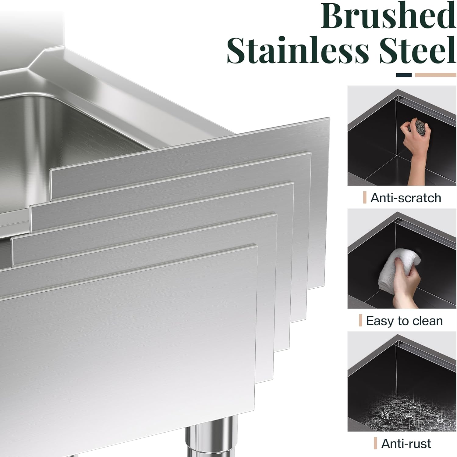 - Durable Stainless Steel: Made of brushed stainless steel with anti-condensation coating. This stainless steel sink is rust-proof, dent-resistant, and built for long-term use